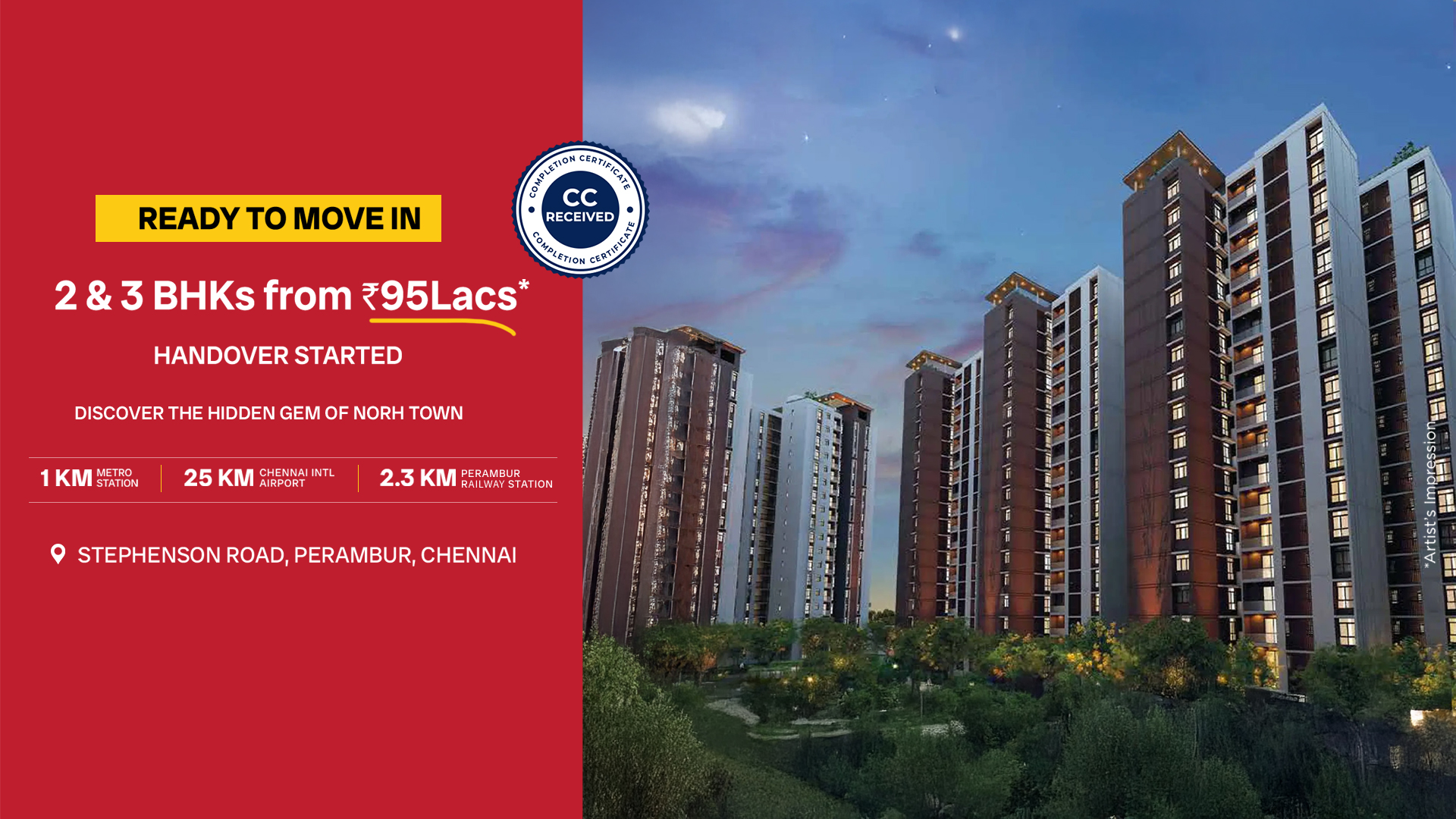 North Town is strategically built in the heart of North Chennai creating a new residential hub in Chennai. Rainbow Chetna -a Premier Residential development is the newest addition in North Town.Nestled in the North-East Corner of North Town, Rainbow Chetna offers Vaastu compliant 2 & 3 BH K Apartments to suit each individual needs with customizable apartments. Rainbow Chetna at North Town is a notch above the rest in the vicinity.